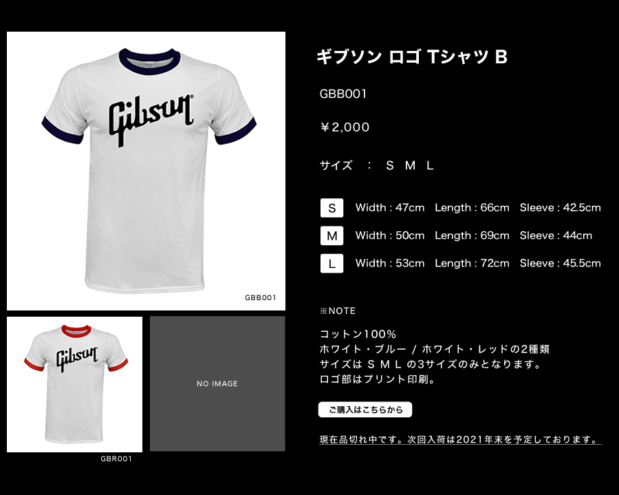 ギブソンロゴTシャツB/ホワイト/ブルー